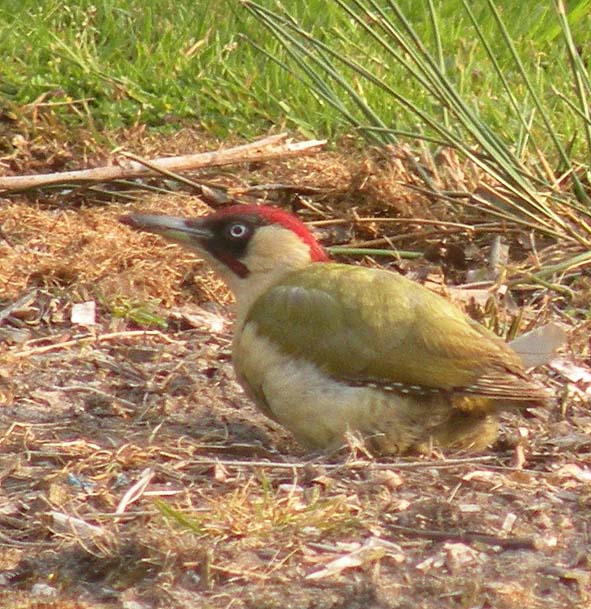 Dankzij de vele, ook oudere bomen in het park vaak te zien en te horen, maar zelden op de grond: de groene specht.